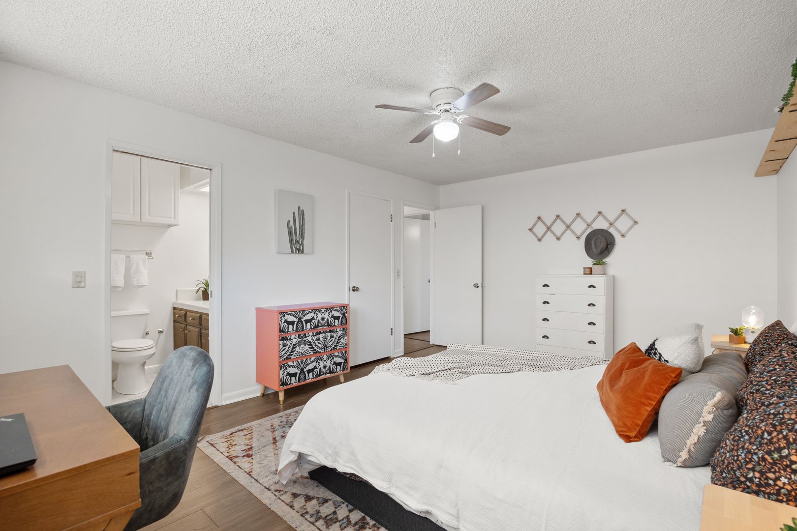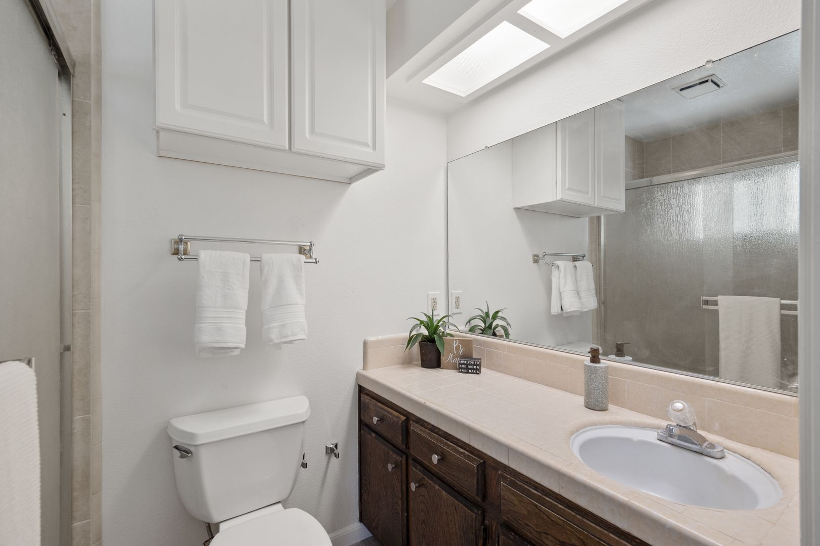 Fresh interior paint gives the home a bright, clean feel. The guest bathroom features a deep soaking tub, and the primary suite includes updated vinyl flooring in the bathroom and closets.